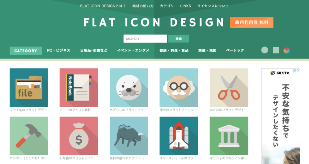 こちらのサイトは、まるでスマホのアプリのアイコンや記号のようなロゴなどの素材を無料でダウンロードできます。