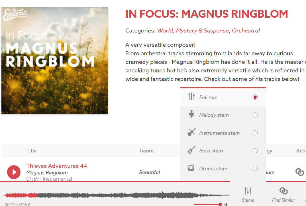 Epidemic Sound(エピデミックサウンド)がアピールしているサービスの一つとして、ステム(stem)という機能があります。